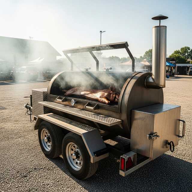 Our cookers are flat rack grills, not rotisserie, and are all tow-behind units.