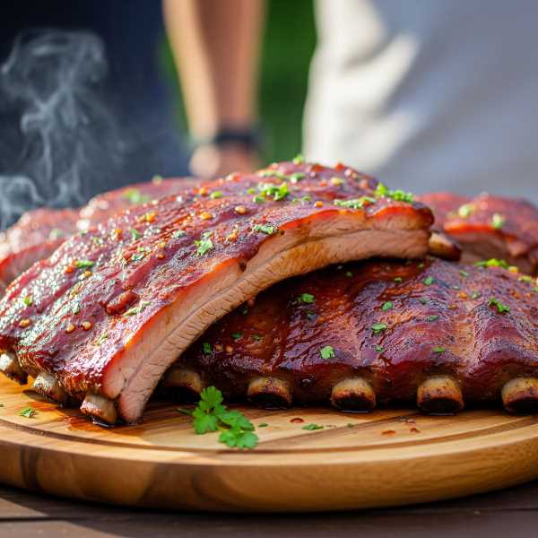 Smoked to perfection, sauced with love! The slabs are seasoned, smoked, sliced and sauced. Cold slabs are ready to be re-heated. Hot ones straight out of our oven and are ready to eat.